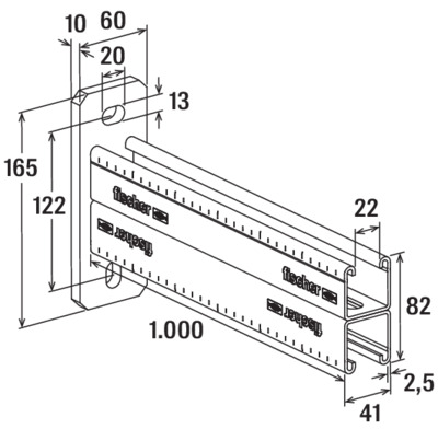 De railconsole FCA maakt een snelle en eenvoudige montage van bijvoorbeeld leidinggoten langs de wand mogelijk. De console is ook zeer geschikt als draagarm voor luchtkanalen en kabelgoten. Eenvoudige uitlijning van de beugel door gaten met gleuven in de grondplaat, die 90° ten opzichte van elkaar zijn gedraaid.