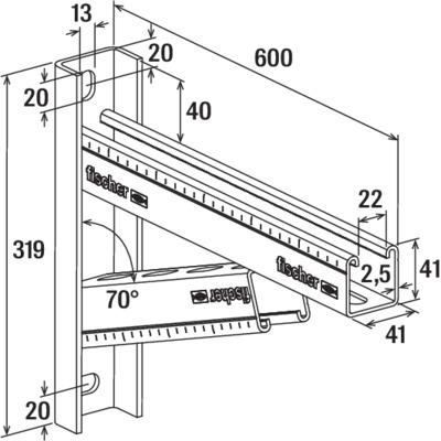 De massieve fischer wandrailconsole FCA maakt een snelle en eenvoudige montage van bijv. pijpen langs een wand mogelijk. De eenvoudige uitlijning door middel van slobgaten in de grondplaat, die 90° ten opzichte van elkaar zijn verdraaid.