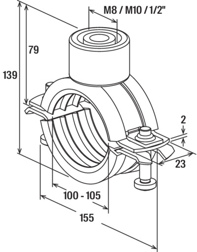 - Voor eenvoudige en eenvoudige bevestiging van pijpleidingen met draadstangen of stokschroeven