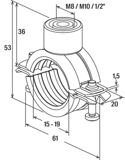 - Voor eenvoudige en eenvoudige bevestiging van pijpleidingen met draadstangen of stokschroeven