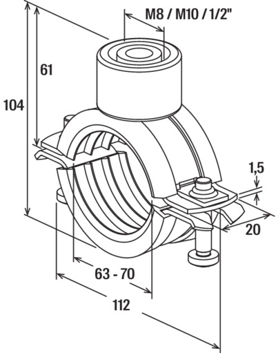 - Voor eenvoudige en eenvoudige bevestiging van pijpleidingen met draadstangen of stokschroeven
