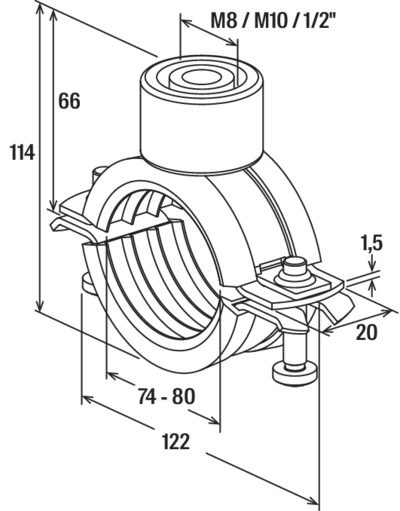 - Voor eenvoudige en eenvoudige bevestiging van pijpleidingen met draadstangen of stokschroeven