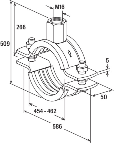 - Vanaf ø 124 mm is de montage met 2 draadstangen mogelijk, bijv. voor de bevestiging van gietijzeren afvoerleidingen aan daken.