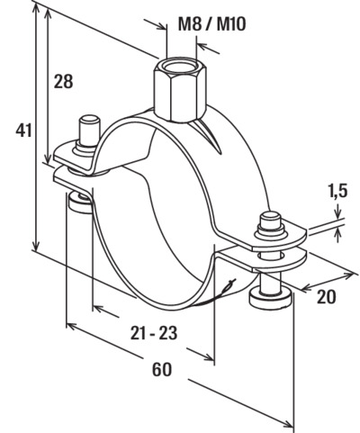 Productinformatie "FISCHER FRSN 21-23 M8/M10 PIJPBEUGEL"