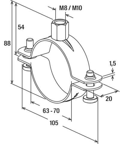 FISCHER FRSN 63-70 M8/M10 PIJPBEUGEL