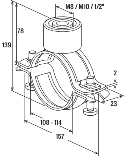 - Voor eenvoudige en eenvoudige bevestiging van pijpleidingen met draadstangen of stokschroeven