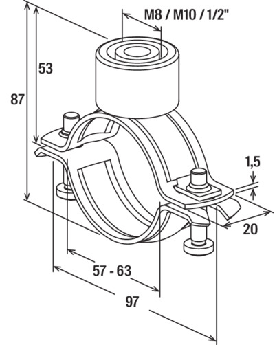 - Voor eenvoudige en eenvoudige bevestiging van pijpleidingen met draadstangen of stokschroeven