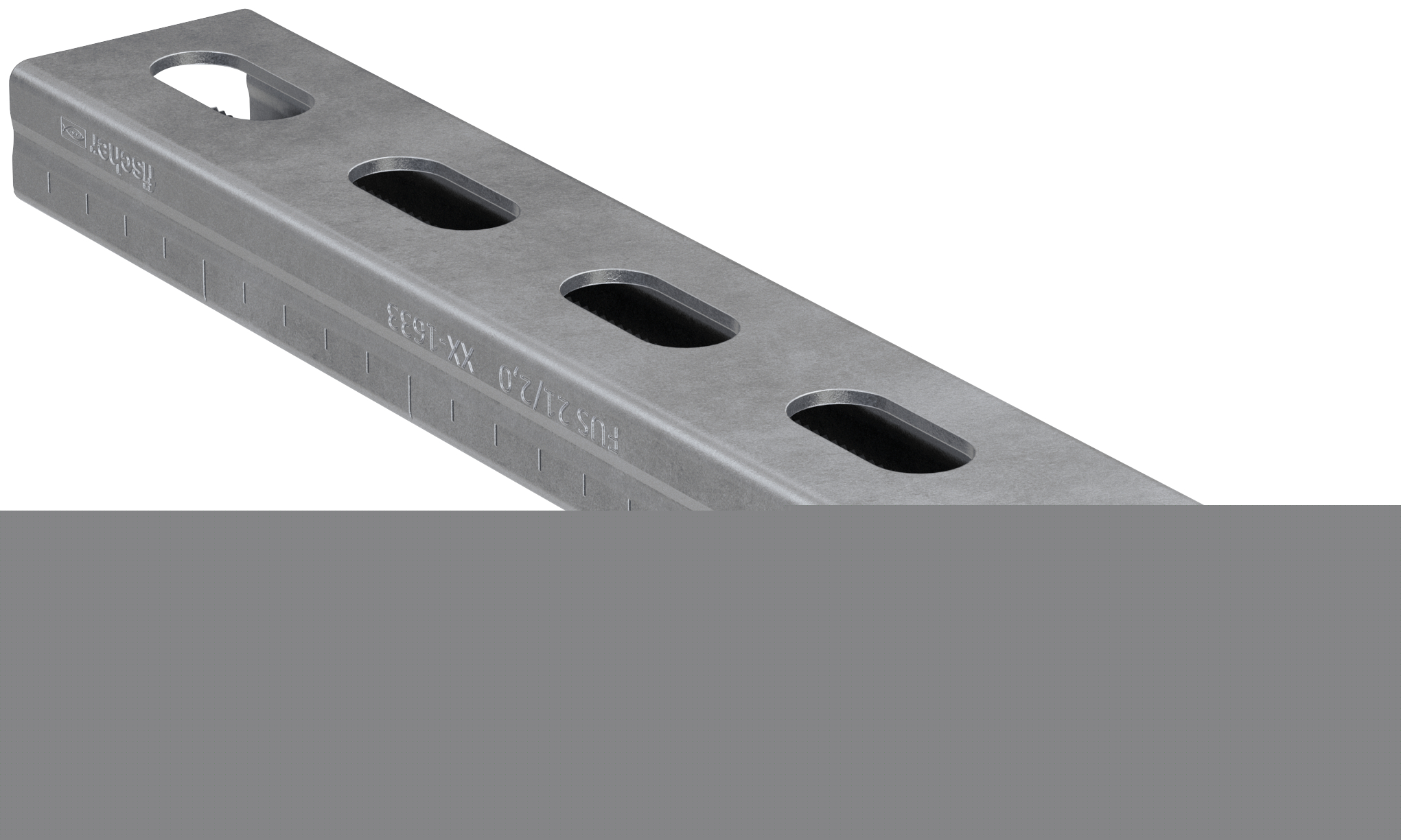 De hoogwaardige montagerail FUS is een U-vormig profiel waarmee horizontale en verticale constructies op solide wijze gebouwd kunnen worden. Het maakt de snelle en efficiënte bevestiging van leidingen en ondersteunende constructies mogelijk. De vormgeving van het profiel staat het gebruik van het complete assortiment van accessoires toe. De inwendige vertanding in de montagerail garandeert een extreem krachtige en veilige verbinding. De verschillende diktes staat optimale afstemming aan de vereiste belastingen mogelijk. De schaalverdeling op de zijkant van de montagerail versimpelt het afkorten. Slobgaten van 30 x 14 mm geplaatst op elke 50 mm afstand vergemakelijkt de bevestiging.