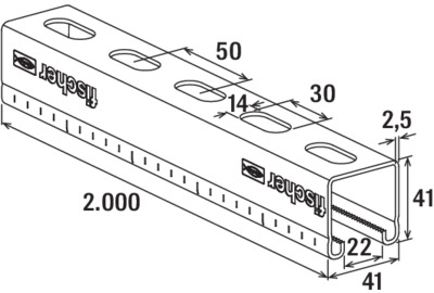 De hoogwaardige montagerail FUS is een U-vormig profiel waarmee horizontale en verticale constructies op solide wijze gebouwd kunnen worden. Het maakt de snelle en efficiënte bevestiging van leidingen en ondersteunende constructies mogelijk. De vormgeving van het profiel staat het gebruik van het complete assortiment van accessoires toe. De inwendige vertanding in de montagerail garandeert een extreem krachtige en veilige verbinding. De verschillende diktes staat optimale afstemming aan de vereiste belastingen mogelijk. De schaalverdeling op de zijkant van de montagerail versimpelt het afkorten. Slobgaten van 30 x 14 mm geplaatst op elke 50 mm afstand vergemakelijkt de bevestiging.