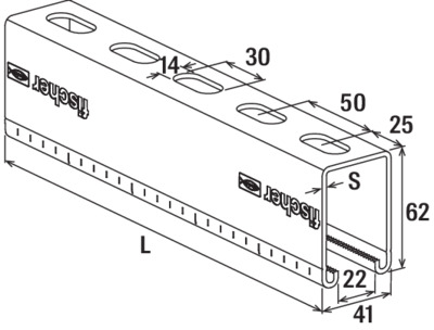 De hoogwaardige montagerail FUS is een U-vormig profiel waarmee horizontale en verticale constructies op solide wijze gebouwd kunnen worden. Het maakt de snelle en efficiënte bevestiging van leidingen en ondersteunende constructies mogelijk. De vormgeving van het profiel staat het gebruik van het complete assortiment van accessoires toe. De inwendige vertanding in de montagerail garandeert een extreem krachtige en veilige verbinding. De verschillende diktes staat optimale afstemming aan de vereiste belastingen mogelijk. De schaalverdeling op de zijkant van de montagerail versimpelt het afkorten. Slobgaten van 30 x 14 mm geplaatst op elke 50 mm afstand vergemakelijkt de bevestiging.